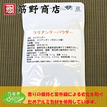 製造者 有限会社 筋野埼玉県川越市府川1327-3コリアンダーパウダー(グリーン) 50g インド産送料無料 ポイント消化 お試し お得 スパイス レモンのような爽やかで華やかな香り。