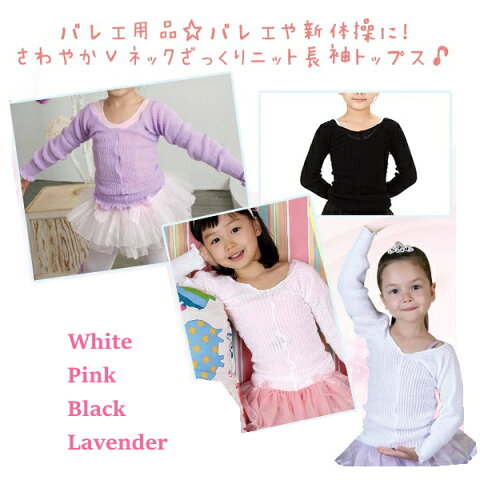 バレエ ウォームアップ ニットトップス 子供 / さわやかVネック ざっくりニット 長袖 バレエトップス ( バレエ子供 ウォームアップ ジュニア キッズ バレエ用品 子ども レッスン 着 こども バレエニット セーター あったか ピンク ブラック ホワイト )格安【対象】