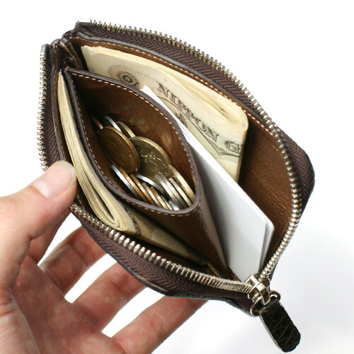 財布 L字 ラウンドファスナー財布 札入れ レディース財布 メンズ財布 薄型 コンパクト クロコダイル ワニ革 鰐革 レザー 革 サイフ チョコ