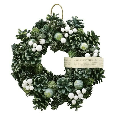 リース クリスマス 冬リース 造花リース ドライフラワー花輪 ナチュラルリース 25cm 冬色カラー 造花 玄関オブジェ ウォールディスプレイ ウォールデコレーションアートウォール 壁飾り 壁掛け おしゃれクリスマスリース グリーンアイス M