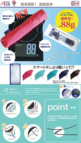 YBB1003★晴雨兼用UVカット耐風仕様【 エアー極軽カーボAirAmane 折りたたみ傘 】AmaneAir超軽量88g50cmujipindot ピンドットコンパクトミニ折り畳み傘携帯折傘アウトドア登山キッズめちゃ軽メンズレディースーパーミニ傘 通勤通学 旅行 ランドセル子供 日傘