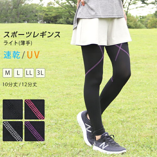 レギンス スポーツ レディース 10分丈 12分丈 薄手 ライト 吸汗速乾 UVカット 大きいサイズ スパッツ LL 3L フィットネスウェア スポーツウェア トレーニングウェア ジム ウォーキング ランニング ロング 高身長 トール ステッチ 初心者 *3